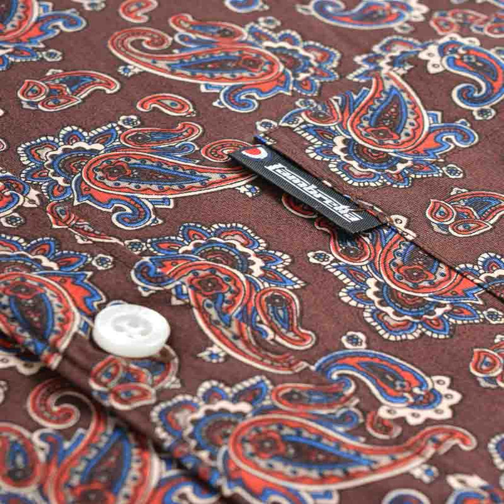 Long sleeve cotton shirt with a paisley all-over print and a branded woven side seam label.